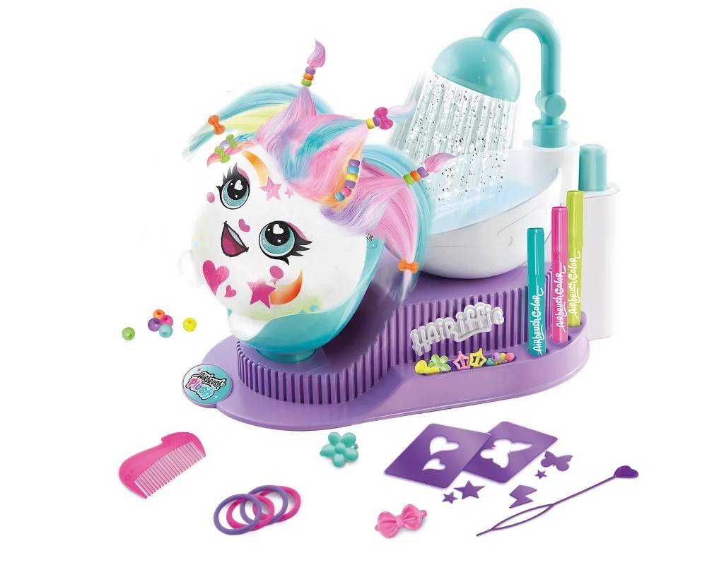 Objavte kreatívnu sadu, s ktorou deti od 6 rokov premenia plyšového maznáčika na originálne umelecké dielo. Vďaka elektronickému airbrushu v tvare fénu, 6 farbám a až 120 opakovane použiteľným šablónam vytvoria farebné vzory, ktoré možno po vypratí ľahko zmeniť. Súčasťou je umývacia stanica so skutočným prúdom vody a viac než 20 vlasových doplnkov na styling. Sada rozvíja kreativitu, jemnú motoriku a ponúka hodiny interaktívnej zábavy.