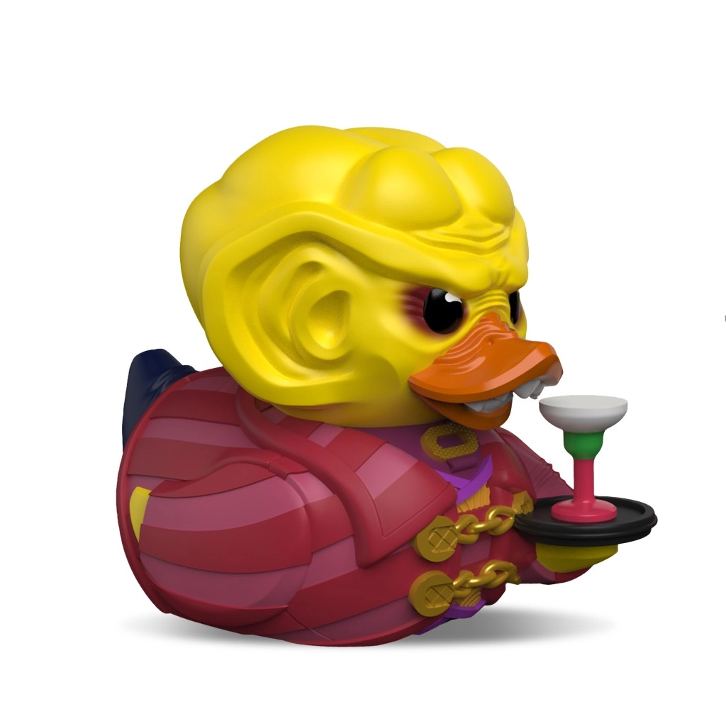Verné detaily odevu, zlaté reťaze a podnos s pohárom robia z tejto kačičky neprehliadnuteľný kúsok pre každého fanúšika.