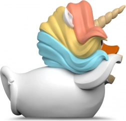 Biela silueta, oranžový zobák, rohový výstupok a pastelová hriva vytvárajú jedinečný, hravý vzhľad.