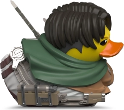 Táto štýlizovaná zberateľská kačička TUBBZ prináša fanúšikom Attack on Titan obľúbeného kapitána Leviho v roztomilom „duck“ poňatí. Verné detaily ako zelený plášť, emblém na bunde a dvojité čepele podčiarkujú autenticitu oficiálnej licencie a potešia každého fanúšika aj zberateľa limitovaných edícií.