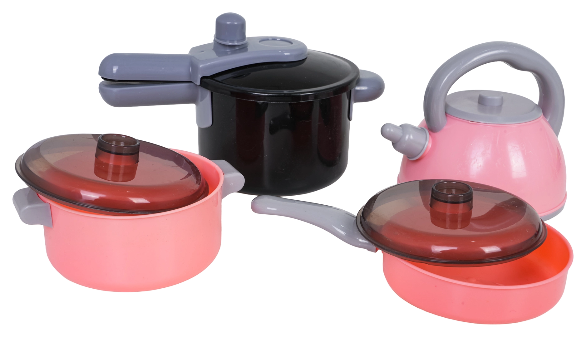 Hrniec, panvica s pokrievkou, tlakový hrniec a kanvica dopĺňa kompaktný gril. Deti môžu variť, dusiť aj grilovať obľúbené „jedlá“.
