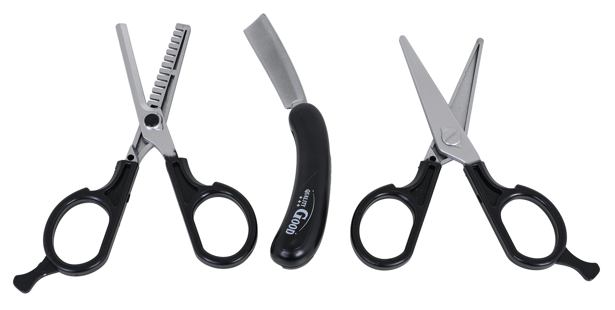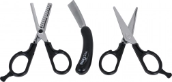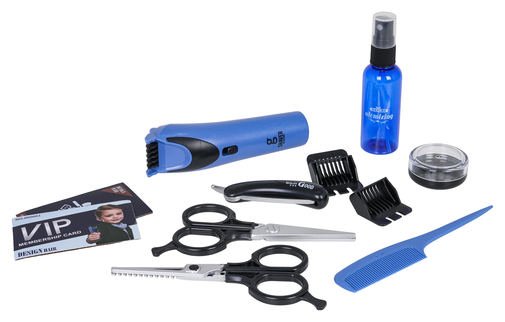 - Bohatá výbava – mašinka, 2 druhy nožníc, britva, 2 nadstavce, 2 fľaštičky na kozmetiku, hrebeň a 2 VIP karty.