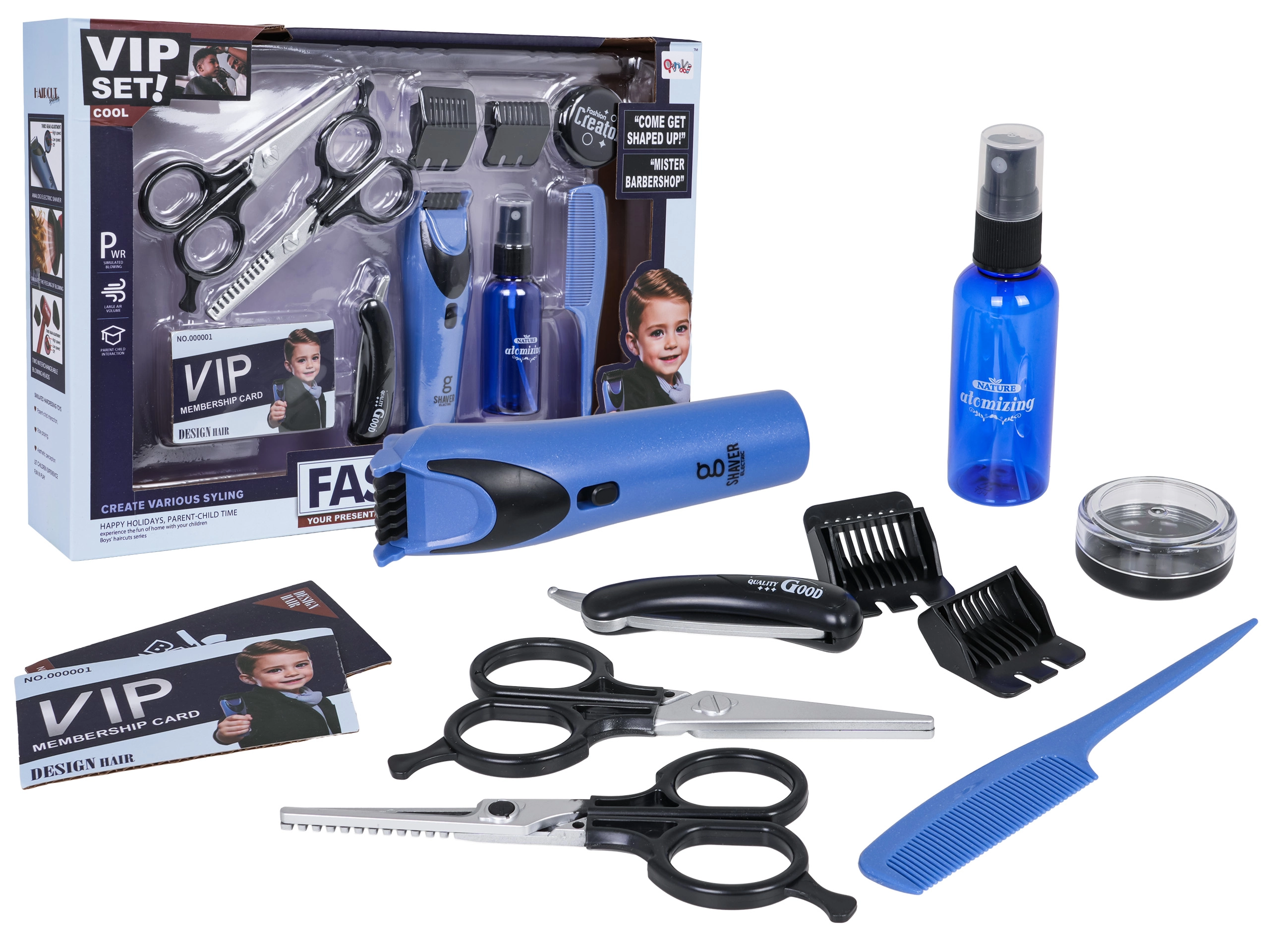 Hlavnou hviezdou je mašinka so zvukovými efektmi a pohyblivými čepeľami pre realistický zážitok z hry. Vďaka 11 dielom príslušenstva môžu deti kompletne „obslúžiť“ zákazníka – od strihania cez styling až po starostlivosť o fúzy.