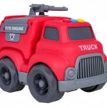 Zábavné hasičské auto pre najmenších od 18 mesiacov prináša svetelné a zvukové efekty, bezpečné zaoblené tvary a odolné prevedenie v živých farbách. Na streche nájdete tlačidlá, ktoré spustia zvuky štartu, jazdy a cúvania aj veselú melódiu, zatiaľ čo svetielka blikajú. Súčasťou je vysúvateľné hasičské delo a otvárateľná zadná klapka pre ešte viac herných scenárov. Batérie sú v balení.