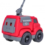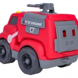 Na streche auta sú ľahko dostupné tlačidlá pre zvuky štartu, jazdy a cúvania aj veselú melódiu. Deti nadchne tiež otočné/vysúvacie hasičské delo a otvárateľná zadná klapka. Hračka je pripravená na použitie hneď po rozbalení – 4× LR44 batérie sú súčasťou balenia.