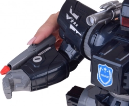 Interaktívny policajný robot na diaľkové ovládanie prináša akčnú zábavu pre deti. Vie sa pohybovať, otáčať, tancovať na melódie, má svetelné efekty, zvukové efekty a streľbu mäkkými projektilmi. Vďaka veľkým rozmerom cca 38 × 30 × 16 cm, nastaviteľnej hlasitosti a demo režimu je perfektným darčekom pre malých fanúšikov polície a robotov.