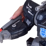 Masívne nohy a široké chodidlá pre stabilnú chôdzu, detaily POLICE, odznaky a ramenná svetelná lišta. Pohyblivé ruky umožnia nastavovať dynamické pózy.