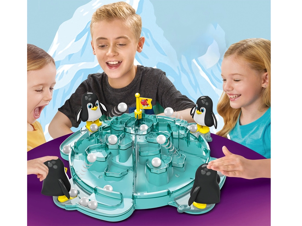 Vrhnite sa do šialenej „bitky na snehové gule“ na ľadovej hore! Každý hráč ovláda svojho tučniaka – stačí stlačiť jeho hlavu a vystreliť guľôčku po kľukatých dráhach smerom k vrcholu. Hra prináša rýchlu, dynamickú a hlasnú zábavu pre deti aj dospelých a zároveň rozvíja jemnú motoriku a koordináciu oko–ruka.
