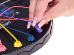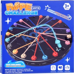 Objavte zábavný tréning mozgu s kruhovou doskou, farebnými kolíkmi a elastickými šnúrkami. Hráči prepájaním bodov vytvárajú spletence a potom hľadajú správne poradie krokov, ako ich uvoľniť a úplne rozpliesť. Hra ponúka viac úrovní náročnosti – od jednoduchých vzorov pre začiatočníkov až po komplexné výzvy pre pokročilých.