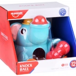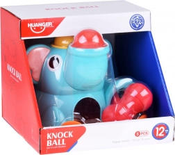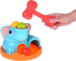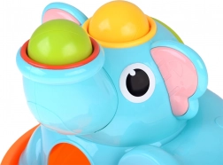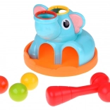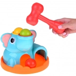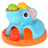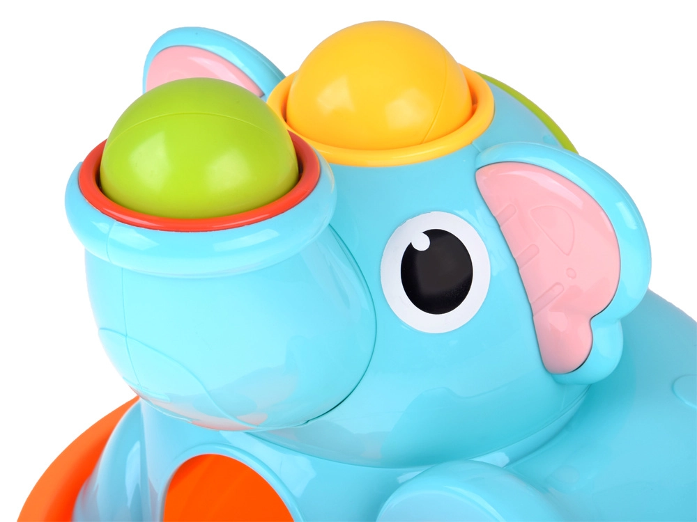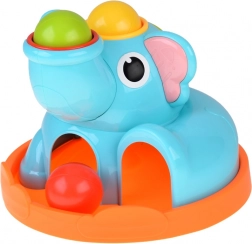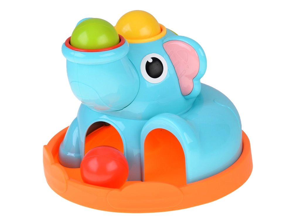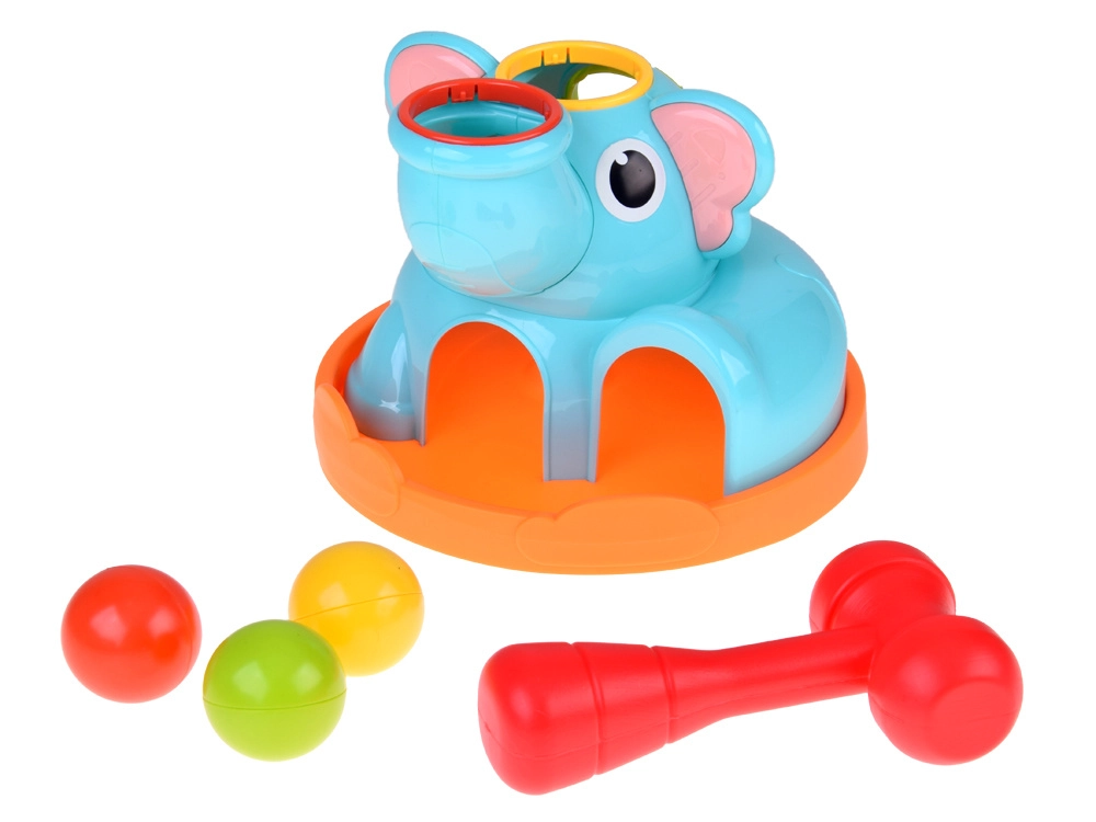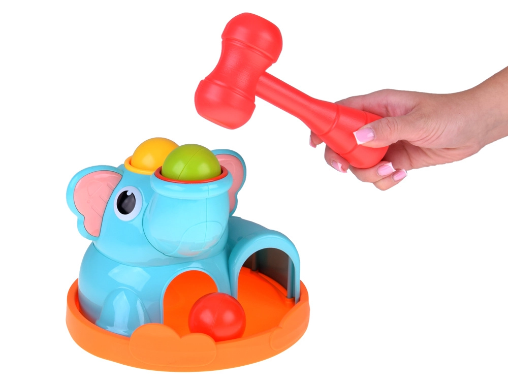 Roztomilý sloník na stabilnej základni láka deti svojimi pestrými farbami a zaoblenými tvarmi. Súčasťou je červená palička a tri farebné guľôčky (červená, žltá, zelená), ktoré sa vkladajú a zatĺkajú do otvorov – guľôčky následne prejdú cez hračku a vyjdú von, čo motivuje k ďalším pokusom a podporuje učenie príčina–následok.