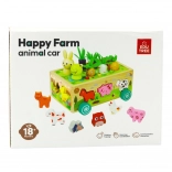 Drevená edukatívna farma na kolieskach so sortérom a magnetickými červíkmi