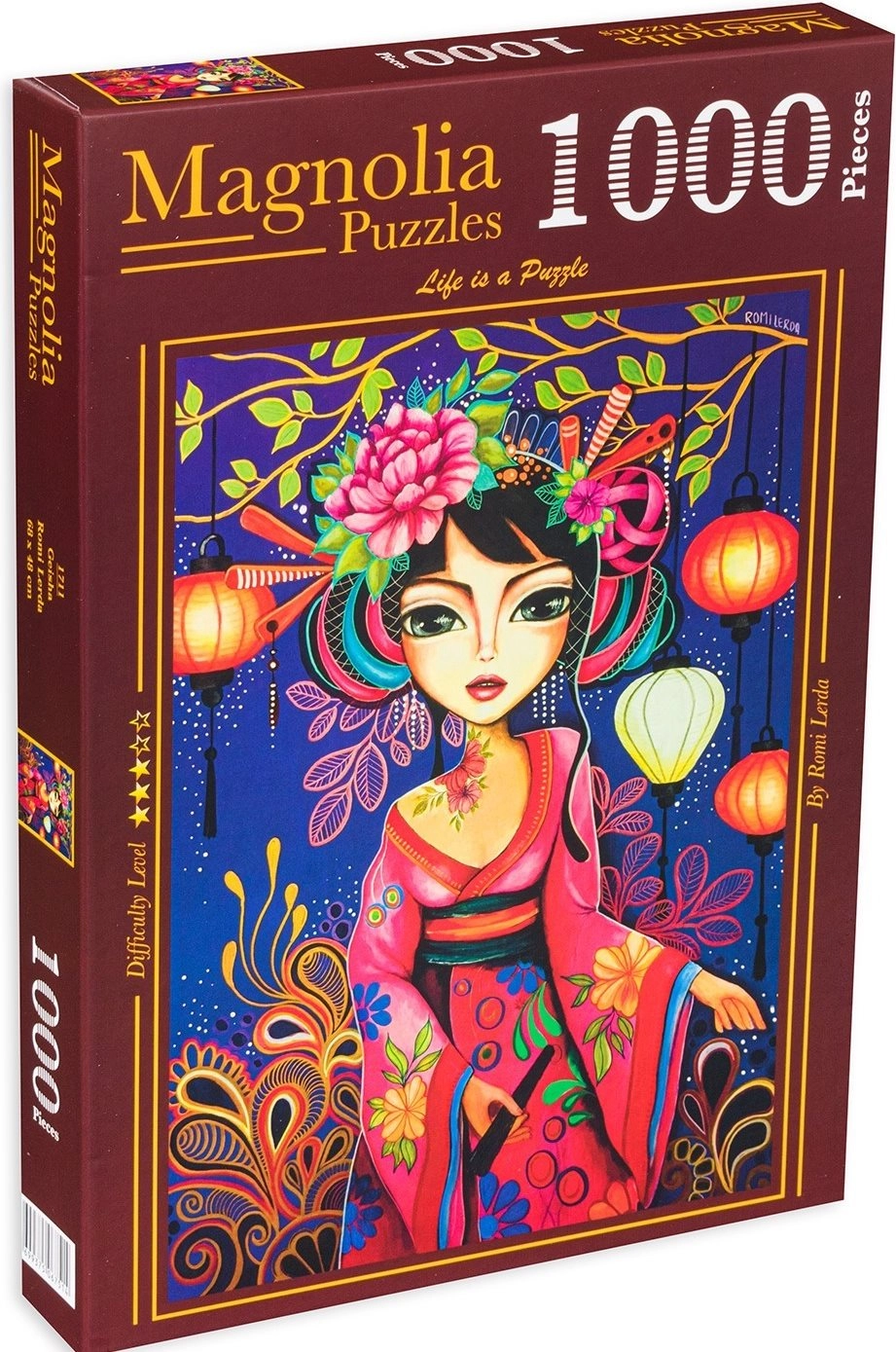 Objavte čaro tradičnej japonskej estetiky s puzzle motívom gejše. Vďaka 1000 precízne vyrezaným dielikom poskytuje ideálnu výzvu pre začiatočníkov aj pokročilých milovníkov puzzle. Výsledný obraz s rozmerom cca 48 × 68 cm vynikne na stene aj na polici.
