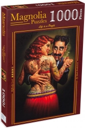 Vychutnajte si čas pre seba s elegantným puzzle MAGNOLIA s motívom LYDIA – potetovanej dámy. Vďaka 1000 pevným dielikom a precíznej tlači je skladanie plynulé a výsledok pôsobivý. Po poskladaní dosahuje obraz približne 48 × 68 cm, takže sa skvele hodí na zarámovanie a vystavenie.