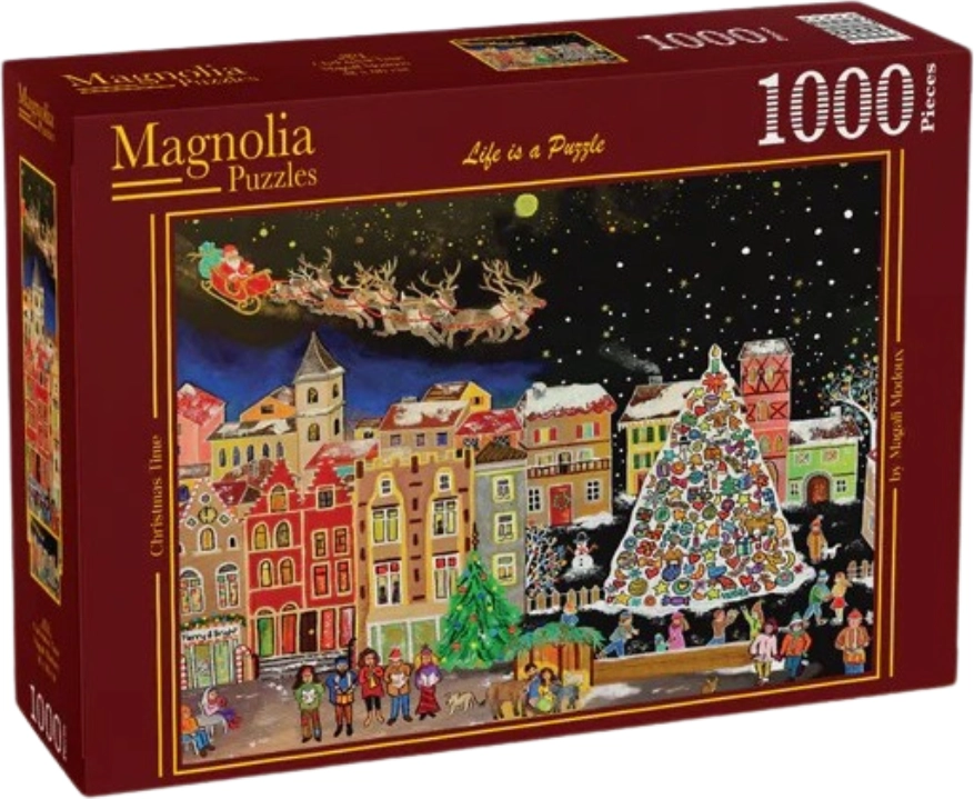 Vstúpte do čarovnej atmosféry Vianoc s puzzle MAGNOLIA Vianočný čas. Vďaka 1000 starostlivo vyrezaným dielikom si vychutnáte príjemnú výzvu aj radosť z hotového obrazu s veľkosťou cca 68 × 48 cm. Skvelé na dlhé zimné večery aj ako darček pre milovníkov puzzle.