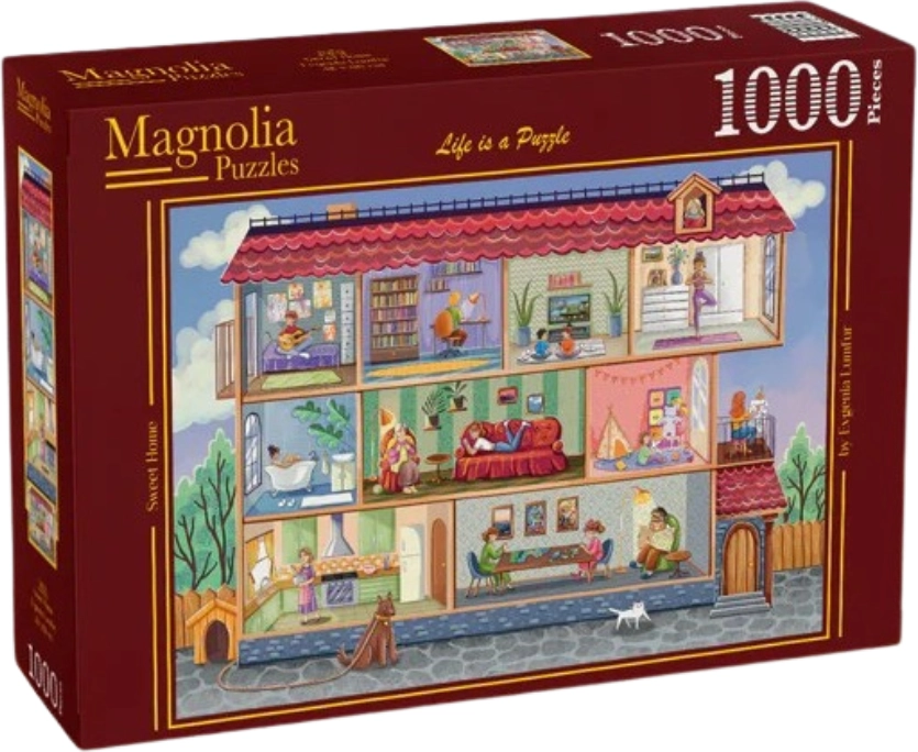 Objavte pokoj a pohodu so štýlovým puzzle Magnolia s motívom „Domov, sladký domov“. Vďaka 1000 precízne vyrezaným dielikom je skladanie príjemnou výzvou pre začiatočníkov aj skúsených puzzlerov. Ideálne na relax po náročnom dni, spoločné chvíle s rodinou a ako elegantná dekorácia po dokončení.