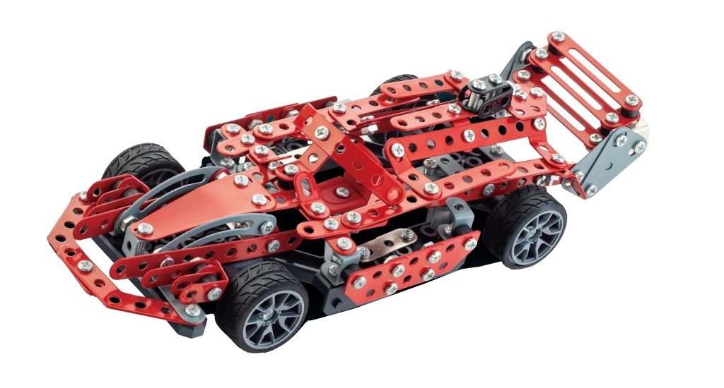 Postavte si vlastné pretekárske auto z kovu! Táto kovová stavebnica formulie s 287 dielmi kombinuje odolné kovové súčiastky a plastové doplnky, ktoré sa spájajú pomocou skrutiek a matičiek. Ponúka zábavnú a zároveň náročnú stavbu, rozvíja trpezlivosť, zručnosť a technické myslenie – perfektná voľba pre malých aj veľkých konštruktérov.