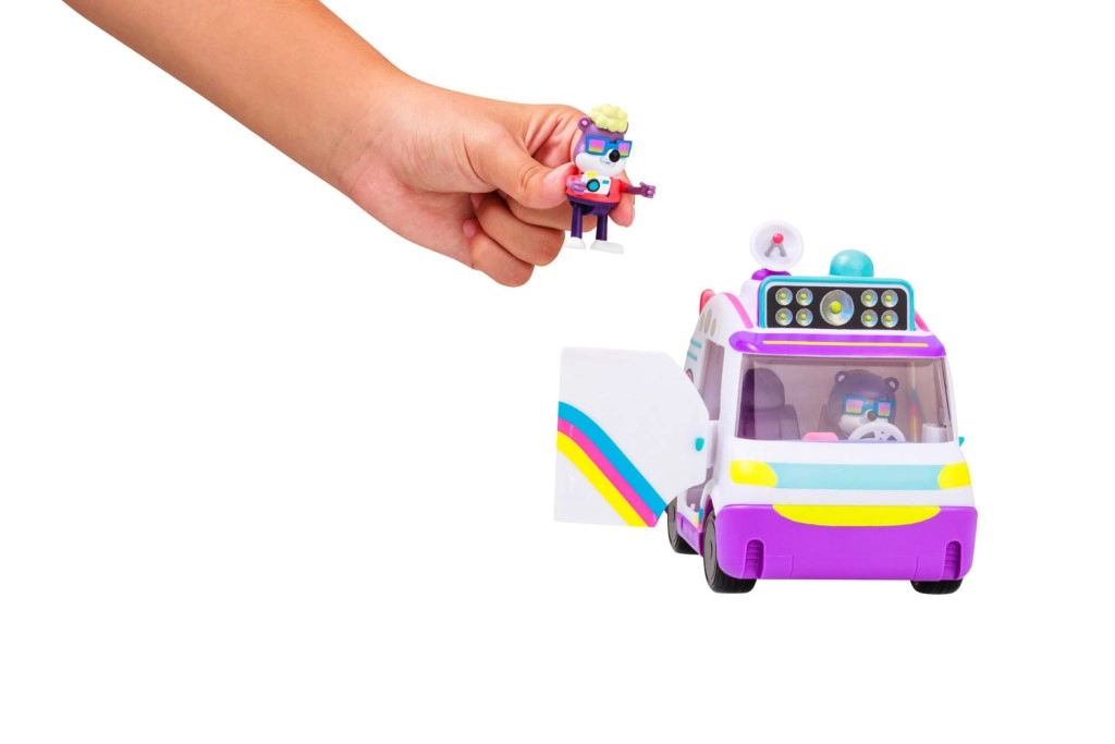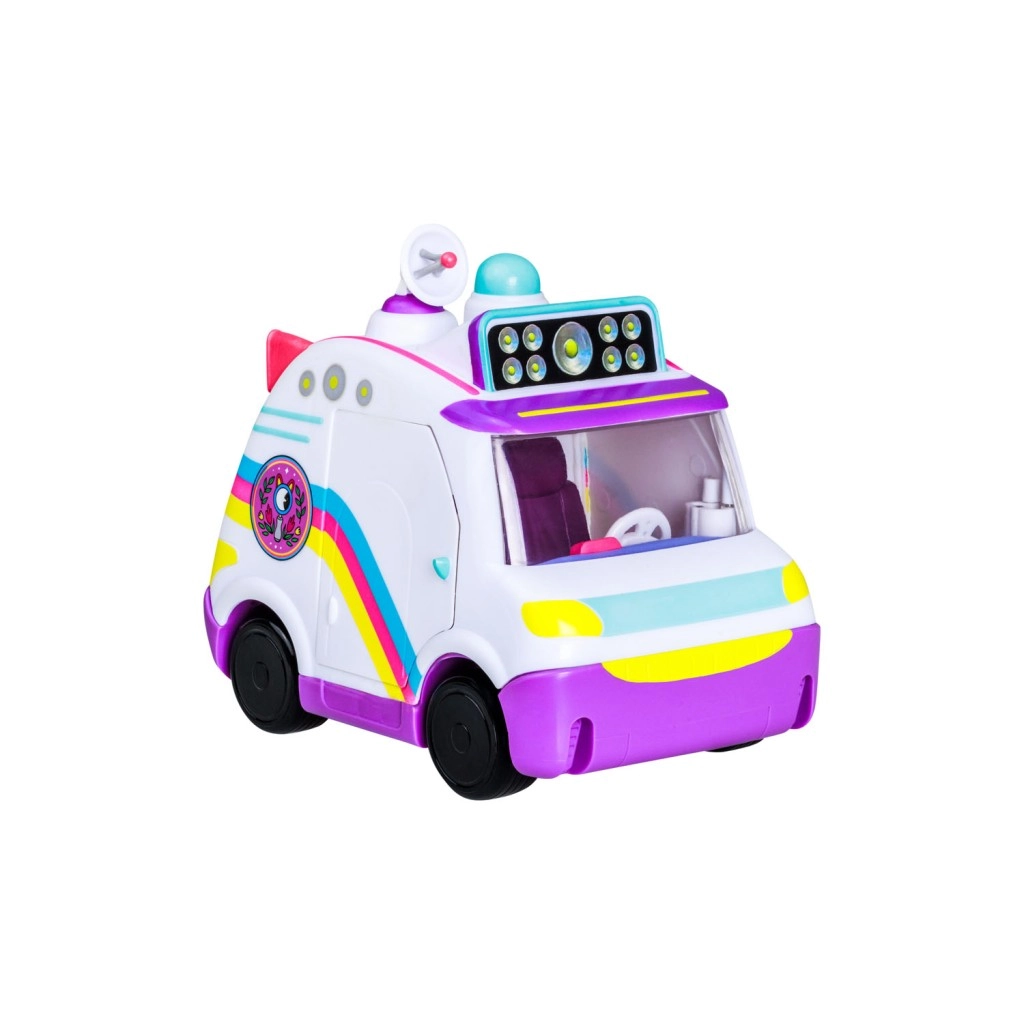 Súčasťou je exkluzívna figúrka s doplnkami, ktoré rozšíria herné možnosti a podnietia predstavivosť. Dodávka má detailný interiér, pohyblivé kolesá a efektné farebné prevedenie s dúhovými prvkami. Set je kompatibilný s ďalšími figúrkami Zvieracie prípady, takže si ľahko vytvoríš kompletný tím.