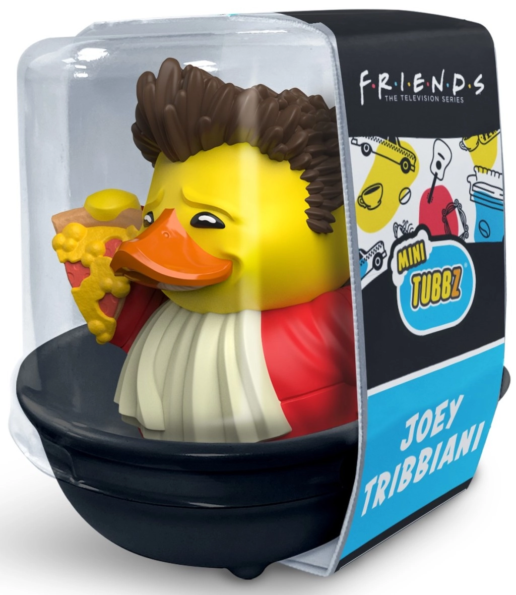 Mini kačička TUBBZ z kultovej série Priatelia prináša Joeyho Tribbianiho v roztomilom, detailne spracovanom kačacom dizajne. Vďaka kompaktnej výške 5,5 cm je ideálna do menších vitrín, na stôl alebo ako drobná pozornosť pre milovníkov seriálu.