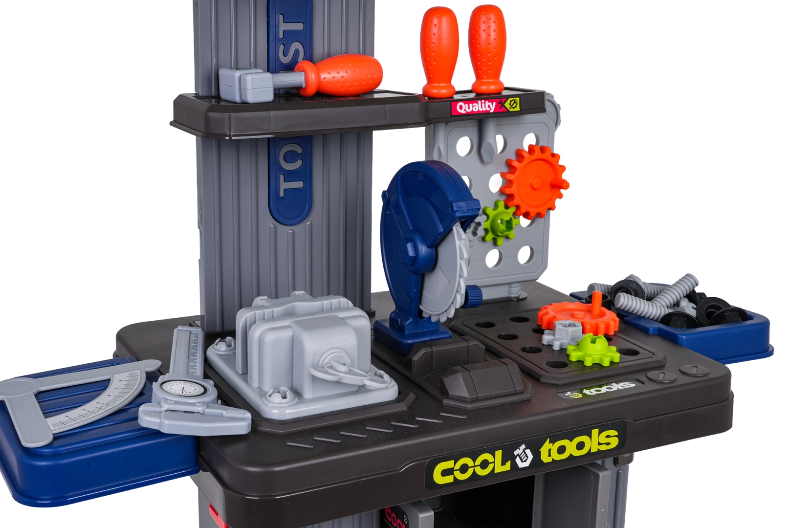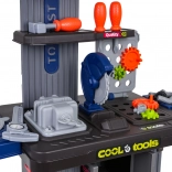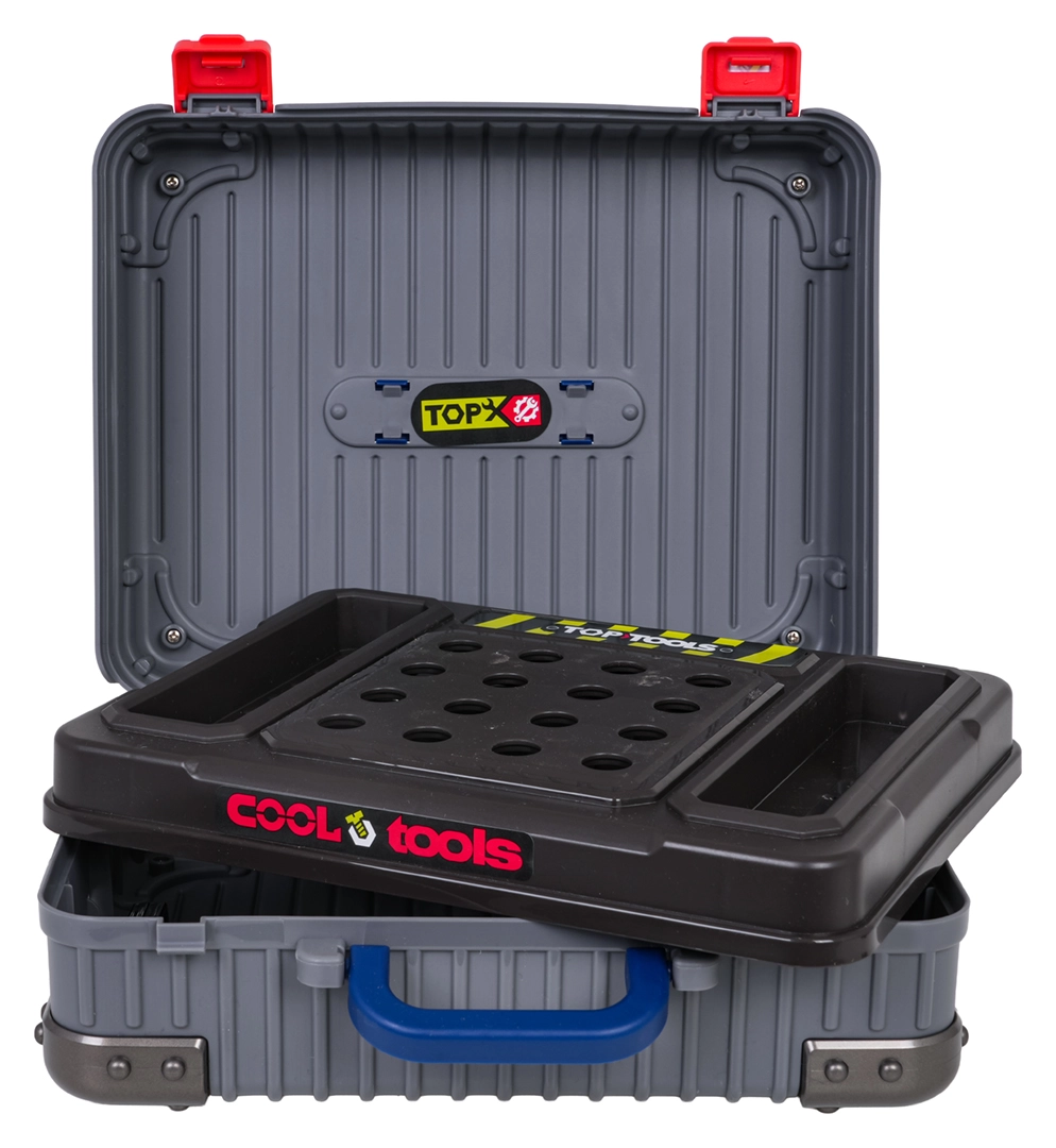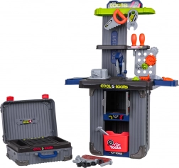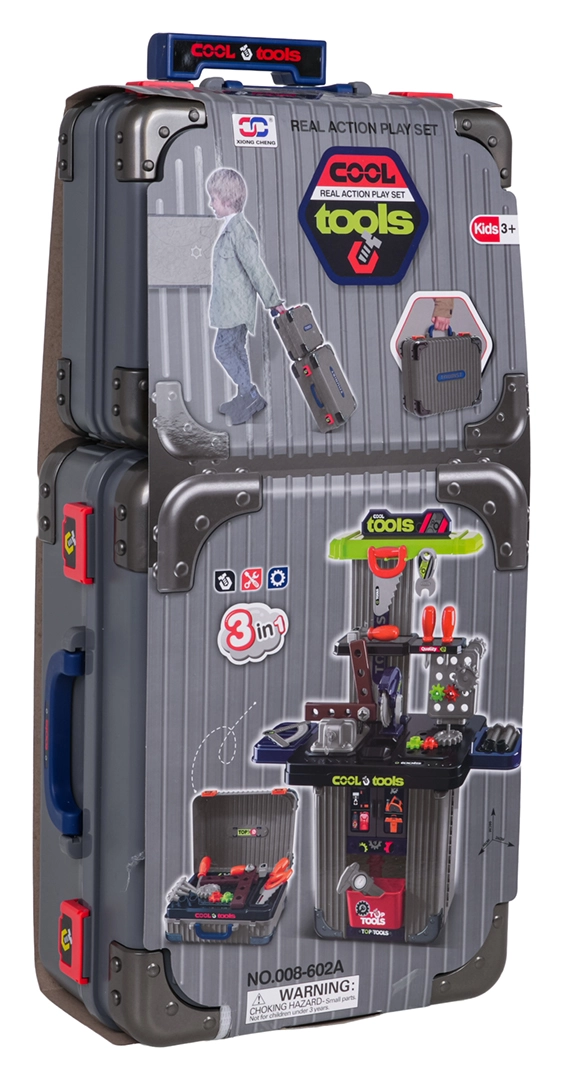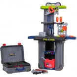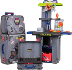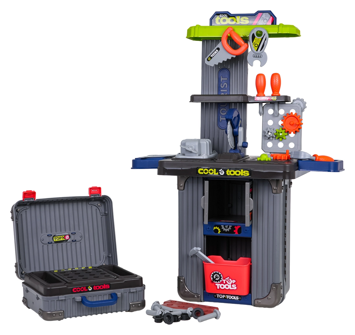 Táto šikovná sada 3v1 kombinuje dva kufríky a bohatú sadu náradia do jedného prenosného pracovného sveta. Deti si ľahko zostavia vlastný pracovný ponk so zverákom, policami a pegboardom a po hraní všetko opäť upracú do mobilných kufrov. Kvalitný plast odolá intenzívnemu používaniu a zaručí dlhú životnosť.