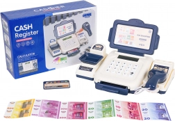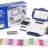 Súčasťou setu sú hračkárske bankovky v rôznych hodnotách a platobná karta, takže si deti môžu vyskúšať platenie v hotovosti aj kartou. Otváracia zásuvka na peniaze a prehľadný displej vytvárajú autentickú atmosféru obchodu – perfektné pre samostatnú hru aj spoločnú zábavu s kamarátmi a súrodencami.