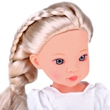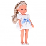 Roztomilá bábika Lovely Girl s dlhými blond vlasmi v cope očarí každé dieťa. Má pohyblivé končatiny, realistické oči a tvár a je oblečená do bielych šiat s modrou mašľou a perlovým detailom. Vďaka kvalitnému plastu a ľahko češateľným vlasom je ideálna na predstieranú hru, prezliekanie a styling účesov.