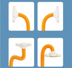 Praktická pružná hadica umožňuje nastaviť smer prúdenia presne tam, kde je potrebné, a vymeniteľné nadstavce vytvoria rôzne fontánové efekty – od nežného mrholenia po hravé striekanie. Stabilné prísavky udržia set na mieste ako na hladkých kachličkách, tak aj na okraji vane.