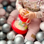 Kontrastné farby a pohybujúce sa guličky pod priehľadnou kupolou poskytujú vizuálnu aj zvukovú stimuláciu pre rozvoj zmyslov.