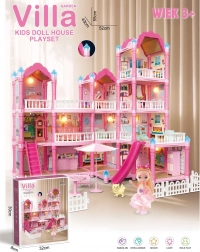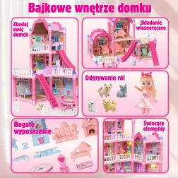 Objavte krásny, trojposchodový domček pre bábiky v ružových tónoch s terasou, šmýkačkou a bohatým vybavením. Sada obsahuje 296 dielov, vrátane štýlových doplnkov a nábytku, a nechýba ani bábika. O večernú atmosféru sa postará nočné osvetlenie, ktoré dodá hre čaro. Ideálna hračka na rozvoj kreativity, fantázie aj jemnej motoriky.