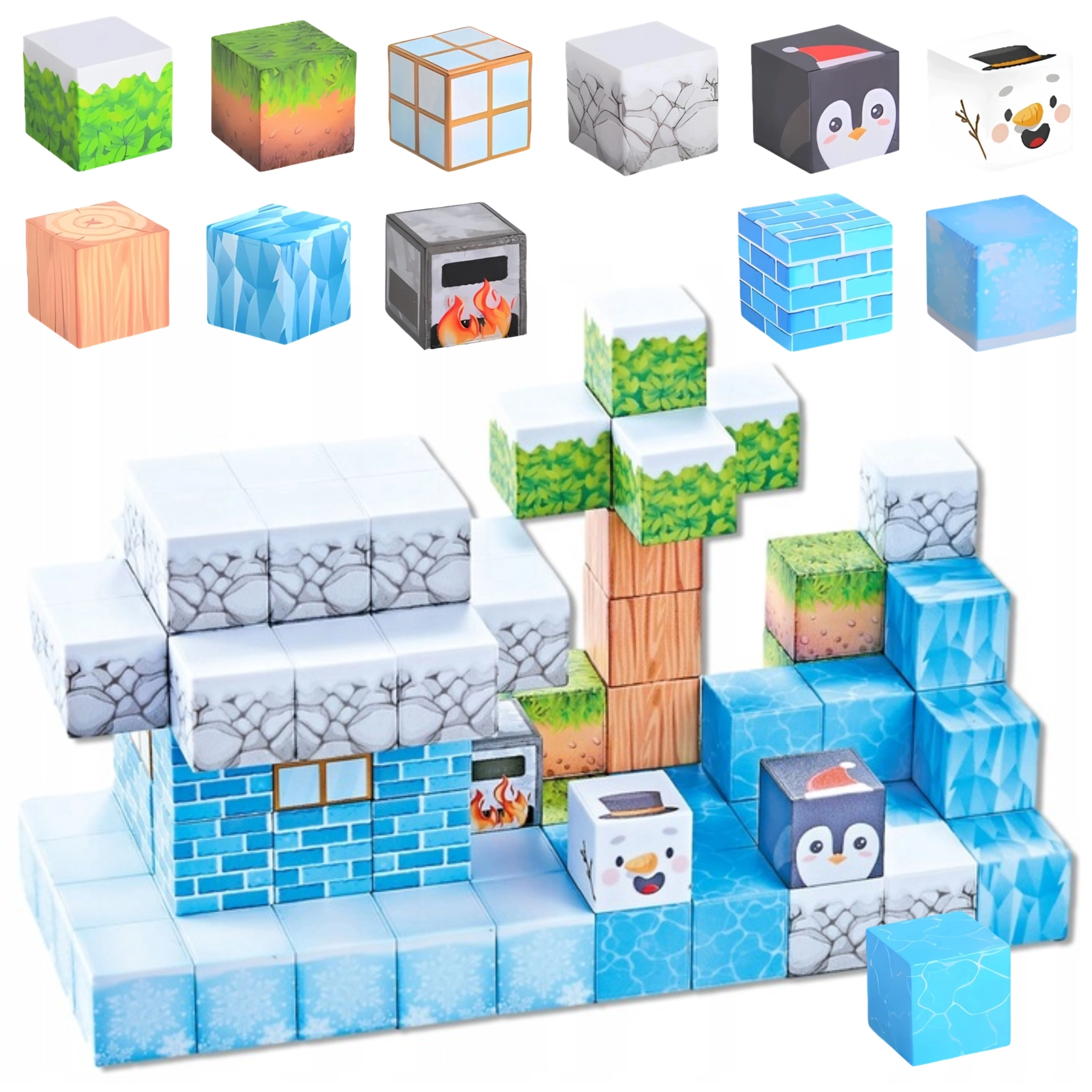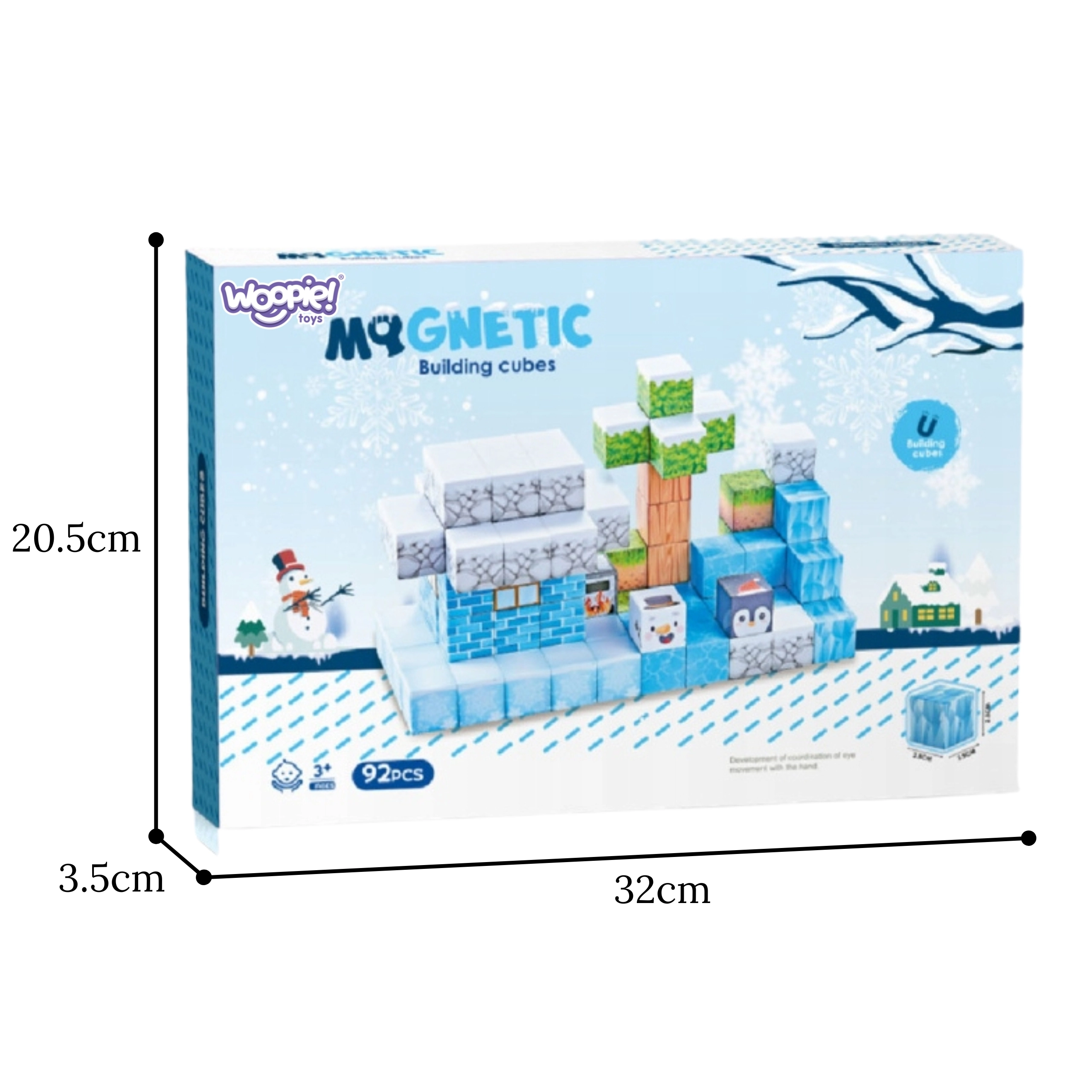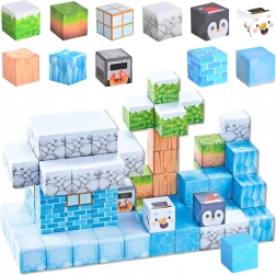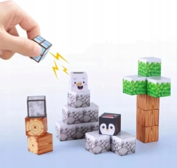 Tento 66-dielny set magnetických kociek v zimnom štýle nadchne malých staviteľov pestrými vzormi ľadu, kameňa, dreva, listov a polárnych zvieratiek. Každý dielik má rozmer 2,5 × 2,5 × 2,5 cm a vďaka zabudovaným magnetom k sebe bezpečne priľne, takže konštrukcie držia bez potreby lepidla či ďalších spojok.