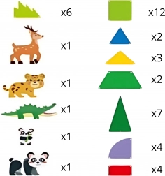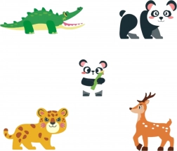 • Figúrky zvierat: 2× panda, leopard, jeleň, krokodíl