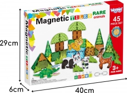 Woopie magnetické stavebné kocky 3D – vzdelávací set vzácne zvieratá, 45 dielov