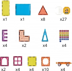 Objavte kreatívny svet magnetického stavania. Farebné dieliky s rôznymi tvarmi a potlačami sa k sebe rýchlo a bezpečne prichytia, takže deti môžu okamžite stavať lokomotívy, vagóniky aj originálne vozidlá. Sada motivuje k tvorivej hre a rozvíja konštrukčné myslenie.