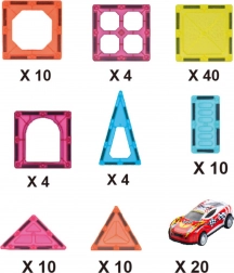 - 92 farebných magnetických kociek, 20 kovových autíčok, úložná krabica