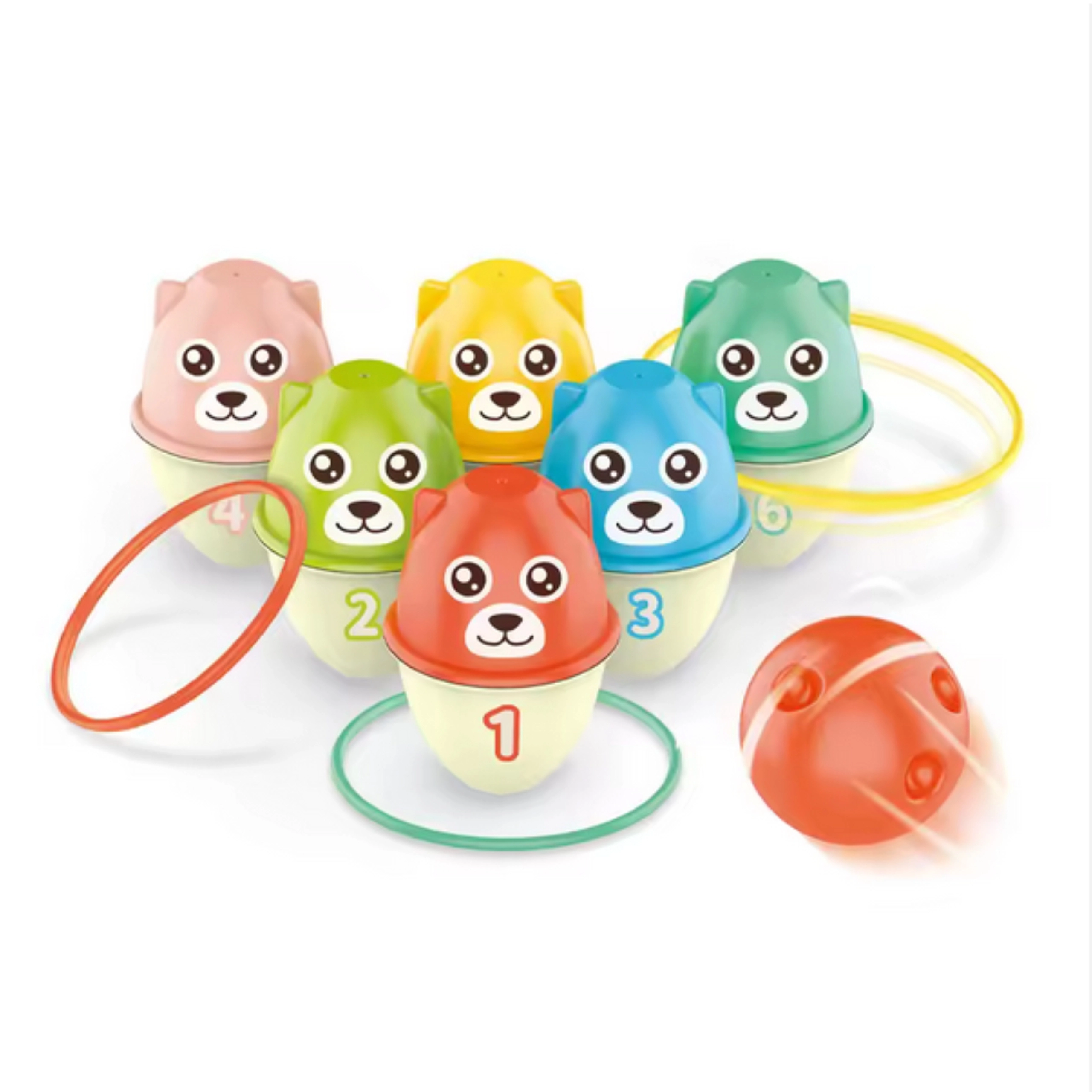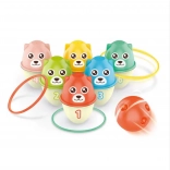 Sada Woopie s farebnými medvedíkmi prináša deťom od 18 mesiacov skvelú kombináciu pohybu a učenia. Každý medvedík má inú farbu a číslo, takže si deti prirodzene osvojujú rozpoznávanie farieb a číslic. Vďaka rôznym možnostiam hry – hádzanie guličkou, trafovanie krúžkami alebo stavaním veže vkladaním medvedíkov do seba – sa malí hráči nenudia a zároveň rozvíjajú svoje zručnosti.