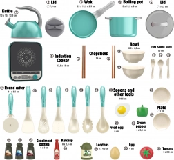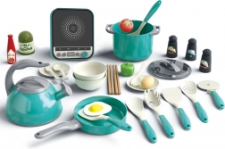 Woopie detská kuchynka s indukciou – hrnce, panvica a kanvica, 30 dielov, zelená