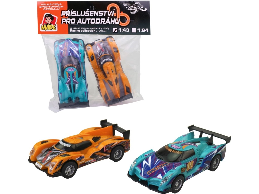 Doplňte svoju autodráhu o náhradné autíčka 1:43 v praktickej sade 2 ks. Kompatibilné výhradne s Racing Collection v mierke 1:43, dve farebné varianty v balení. Ideálne pre deti od 3 rokov, odolný plastový materiál a jednoduché použitie.