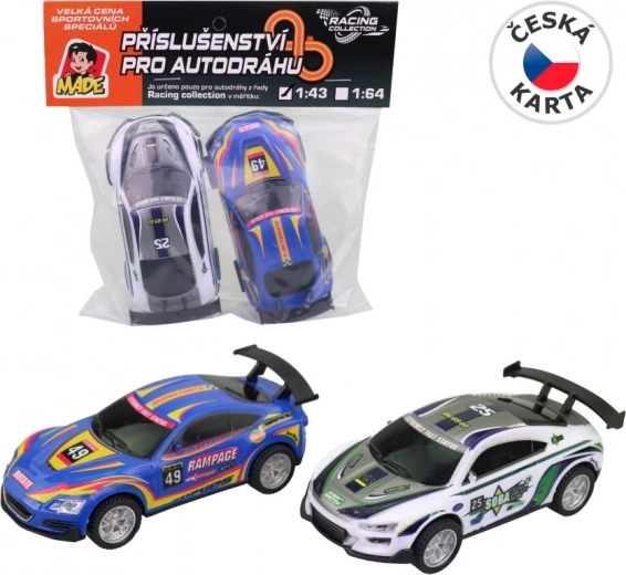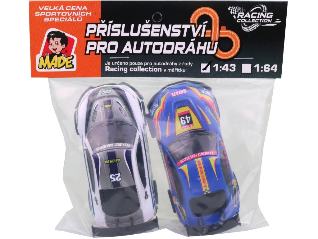 Doplňte svoju autodráhu o náhradné autíčka v mierke 1:43. Táto sada obsahuje 2 kusy v dvoch rôznych farbách, určené výhradne pre autodráhy rady Racing Collection. Odolné plastové vyhotovenie, vhodné pre deti od 3 rokov.