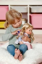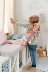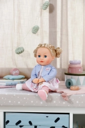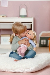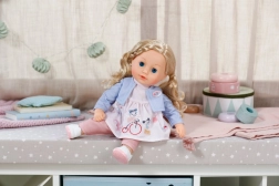 Súčasťou balenia je kompletný set oblečenia: jemné šaty s ľahkým kabátikom, pohodlné legíny a topánky. Vďaka pohyblivým končatinám sa bábika ľahko usádza a oblieka. Hra s bábikou rozvíja jemnú motoriku, empatiu aj predstavivosť – ideálna voľba ako prvá bábika pre najmenších.