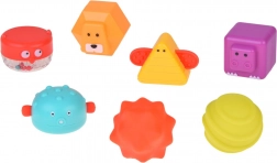 Farebné gumičky umožnia ľahké vkladanie a vyťahovanie dielikov, trénujú úchop, presnosť a silu prstov. Súčasťou je 7 rôznorodých tvarov a malé zrkadielko na zmyslové objavovanie.