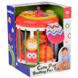 Štyri tlačidlá so zvieratkami prehrávajú tóny do–re–mi–fa, autentické zvuky zvierat aj krátke inštrumentálne melódie a pesničky. Deti si prirodzenou hrou rozvíjajú sluch a rytmus.