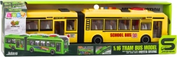 Realistický kĺbový školský autobus v mierke 1:16 poteší malých fanúšikov mestskej dopravy. Ponúka svetelné a zvukové efekty, otváracie dvere a ovládanie natočenia kolies otočným gombíkom na streche. Detailné spracovanie, žlté školské prevedenie a odolné materiály zaručujú zábavnú a rozvíjajúcu hru plnú predstavivosti.