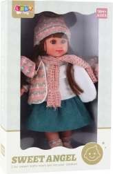 Roztomilá bábika SWEET ANGEL s výškou 36 cm poteší každé dieťa, ktoré miluje hru na rodinu a starostlivosť. Má dlhé hnedé vlasy, jemné črty tváre a realistické oči. Oblečená je do zimnej sady – čiapky, šálu a svetríka, doplnených sukňou, blúzkou a ponožkami. Skvelá na rozvoj fantázie a hranie rolí.