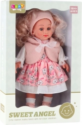 Bábika SWEET ANGEL je navrhnutá s dôrazom na detail – jemnučká tvárička, ružové pery a výrazné oči jej dodávajú prirodzený pôvab. Štýlová ružová suknička s kvetovaným vzorom a bielym golierikom pôsobí elegantne, ružová vesta bez rukávov a čelenka spolu krásne ladia do jednotného celku.