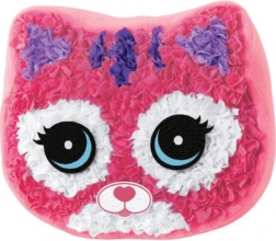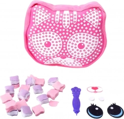 - vankúš v tvare mačky, farebné kúsky materiálov, oči a ňufáčik na nalepenie, plastový krosienok, originálne balenie