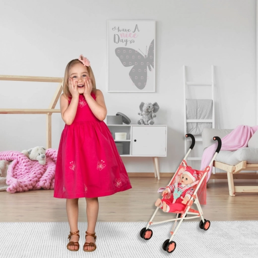 Skladací kočík pre bábiky Annabell podporuje kreatívnu hru, umožňujúcu deťom prebrať rolu rodiča obľúbených bábik. Výška je prispôsobená deťom a mäkké penové rukoväte zabezpečujú pohodlie pri tlačení. Štyri stabilné kolieska umožňujú plynulé manévrovanie. Skladacia konštrukcia umožňuje rýchle zloženie do kompaktnej veľkosti, čo uľahčuje skladovanie aj transport. Praktická sieťovaná taška pridáva hre realizmus.