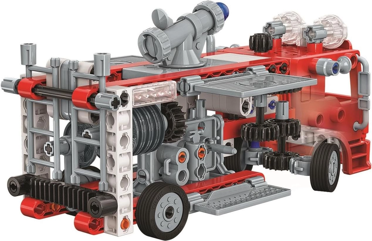 Táto múdra stavebnica prepája svet zábavy a techniky. Deti si postavia realistický model hasičského vozidla s množstvom mechanických detailov, ako sú prevody z ozubených kolies, funkčné vodné delo, riadiaci mechanizmus a modulárny záchranný rebrík. Vďaka premyslenej konštrukcii je model stabilný, odolný a pripravený na akčné scenáre.