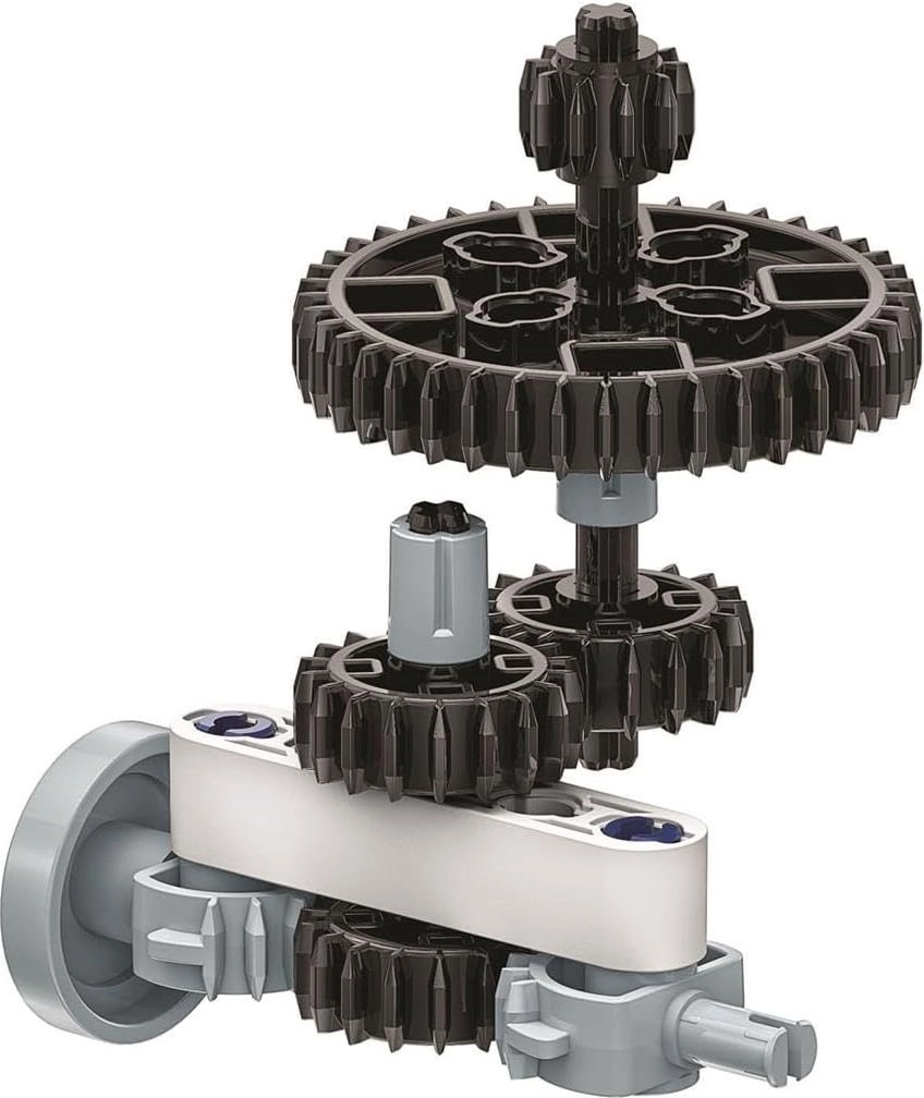 Preskúmajte prevody a prenos pohybu. Viditeľné ozubené súkolesie učí deti základy mechaniky zábavnou formou.