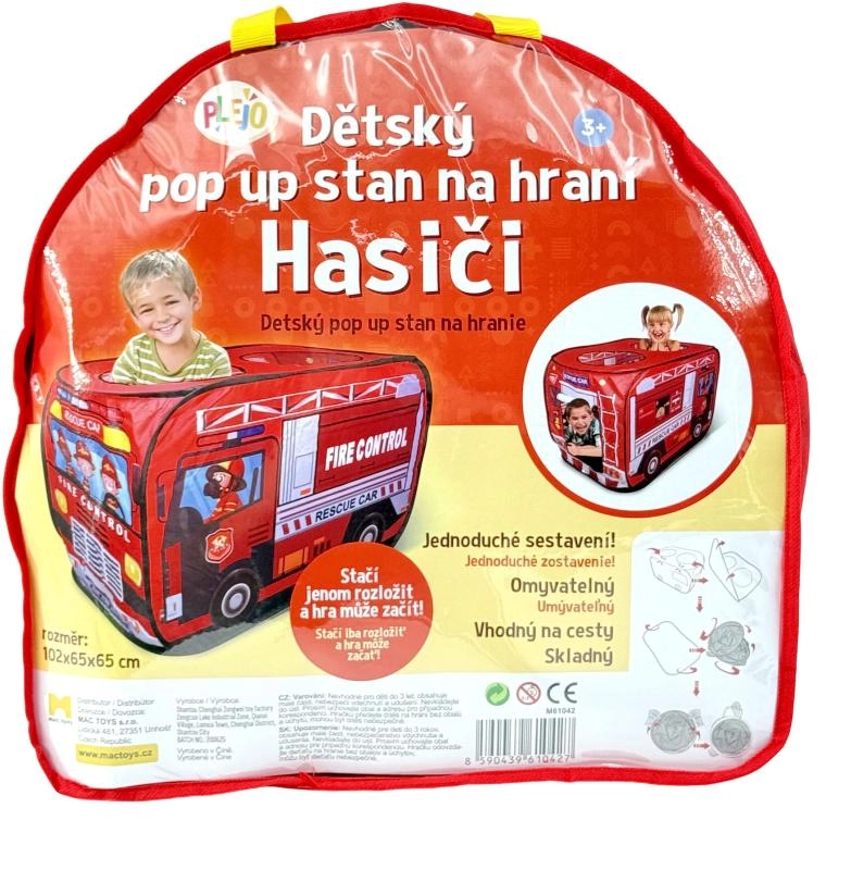 Herný stan Plejo s hasičským motívom premení každú izbu či záhradu na akčnú zónu. Vďaka rýchlej pop‑up konštrukcii ho deti môžu začať používať okamžite – bez náradia a zdĺhavého skladania. Po hre ho ľahko zložíte do kompaktného obalu, ktorý šetrí miesto.
