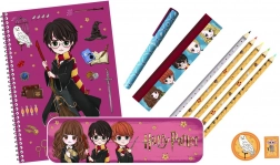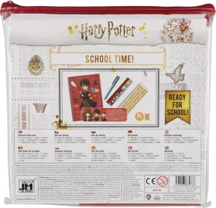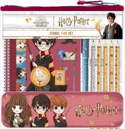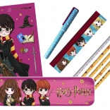Štýlová školská sada s motívom HARRY POTTER v priehľadnom plastovom puzdre obsahuje všetko, čo malý (pred)školák potrebuje: peračník, pravítko, ceruzku, 4 pastelky, gumu, strúhadlo, pero a poznámkový blok. Ideálna na písanie, kreslenie aj poznámky do školy aj na cesty.