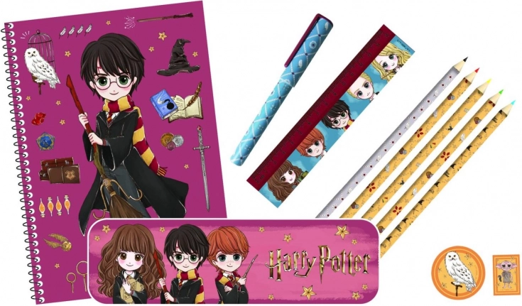 Táto kompletná školská a kreatívna sada s licencovanými motívmi HARRY POTTER prináša perfektne zladené pomôcky v praktickom puzdre na zips. Deti potešia chibi postavičky obľúbených hrdinov, rodičov zas odolné spracovanie a prehľadná organizácia potrieb na jednom mieste.